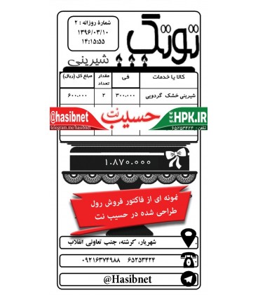 در نرم افزار حسابداری قنادی حسیب نت با وجود کلیدهای لمسی که قابلیت استفاده برای کاربران راست دست و چپ دست برای آن پیشبینی شده است، و با ارتباط باسیم و بیسیم با ترازوهای دیجیتال رادین، دیبال، صبا و صدر، و بهرهمندی از خواندن بارکد تفکیکی و تجمیعی از این ترازوها ، و با ثبت برگشت بیعانه با بارکد، و با ثبت فاکتور با بارکد خوان ، و با ارسال مبلغ به دستگاههای پوز بانکی و با نمایش الباقی وجه قابل پرداخت به مشتری؛ و با ثبت کالای مرجوعی در فاکتور فروش ، و با اعمال تخفیف اتومات با تنظیم مدیر ، و با امکان ثبت همزمان چندین فاکتور ، و با چاپ برچسب قیمت ، و چاپ بارکد برای کالاهای بدون بارکد یا بارکد ضعیف ، و با منوی فروش مصور ، میتوانید با سرعت و دقت بالا فاکتور فروش را ثبت و چاپ نمایید.